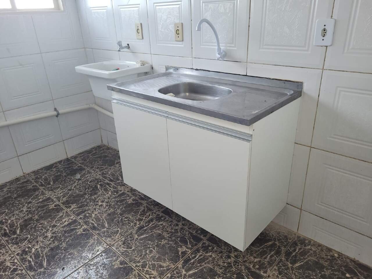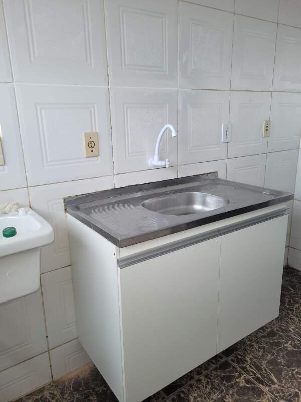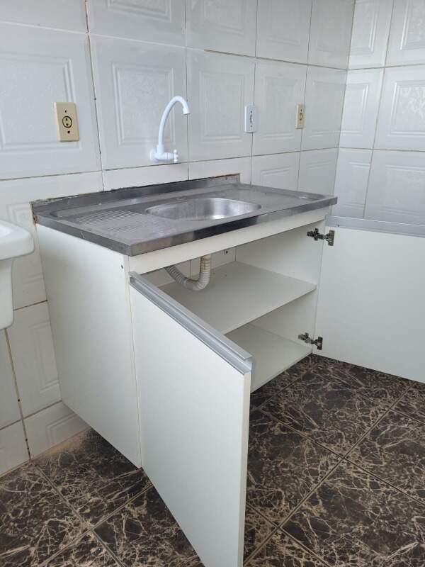 A cozinha, prática e funcional, conta com um armário abaixo da pia, garantindo amplo espaço para armazenamento.